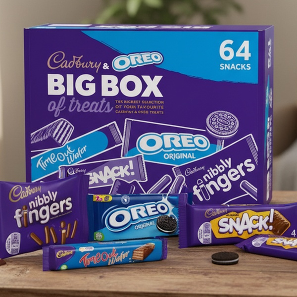 Today's Groupon offers Cadbury and Oreo Big Box of Treats - 64 Snack Packs, distributed by HTUK Gifts.