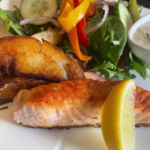 - Lemon & Black Pepper Salmon Fillet. A tender fillet of salmon infused with zesty lemon and aromatic black pepper, paired with buttery baby new potatoes, vibrant salad greens, and a citrus wedge for a burst of summer.