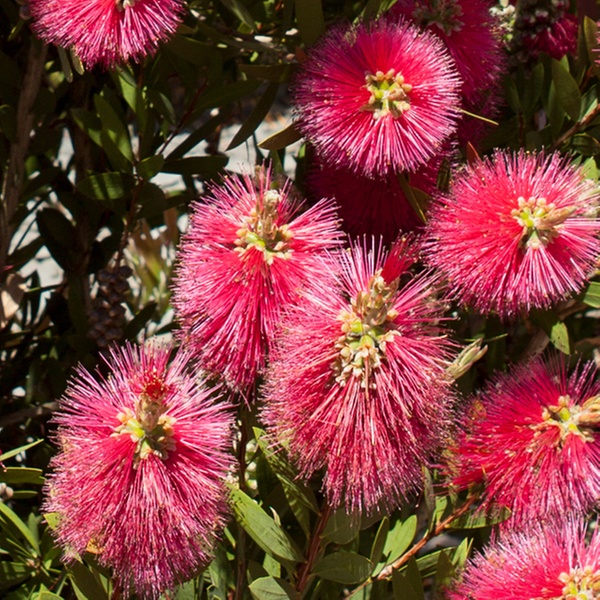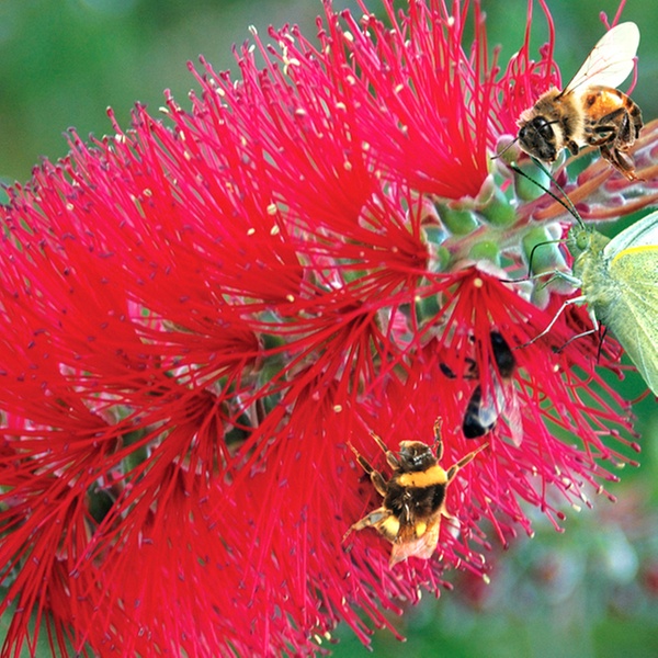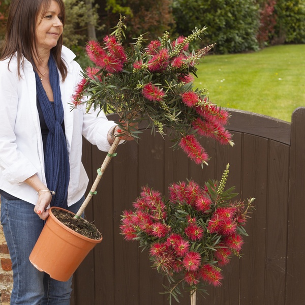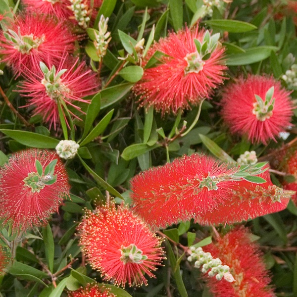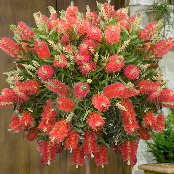 - Striking evergreen tree with fiery, bottlebrush-style blooms in early summer – larger than many other varieties