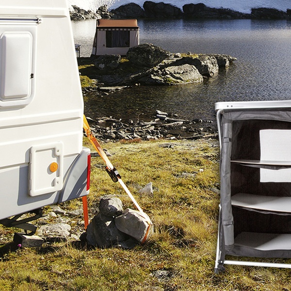 This camping cabinet in black is lightweight and can accommodate various things; it can be folded to save space when not in use