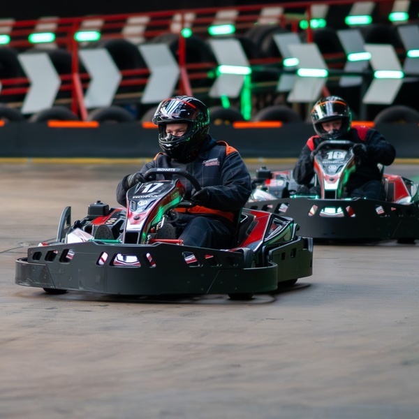 Speed enthusiasts can dart around a circuit in a go-kart during two 25-lap sessions