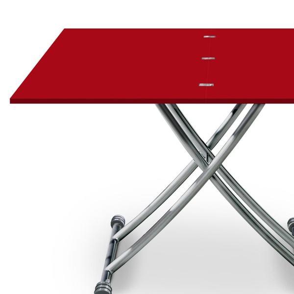 This modular table can serve as a coffee table as well as a dining table; features a contemporary lacquered coating