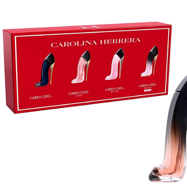 The Carolina Herrera Good Girl Miniatures Gift Set presents four iconic scents in charming 7ml bottles, each fragrance captures a different facet of elegance, from sweet floral warmth to sensual fruity allure, making it an ideal indulgence