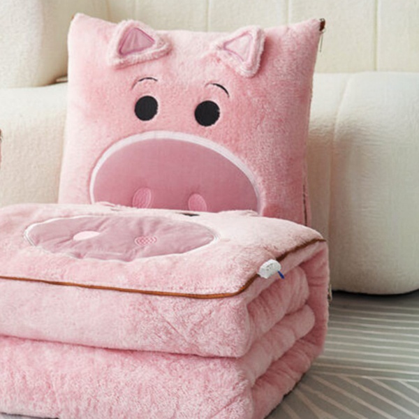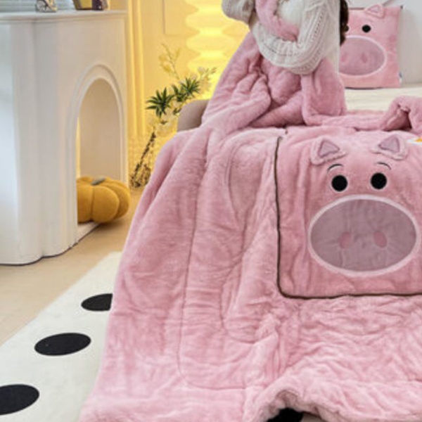 Versatile in function, this cartoon pillow quilt combines a plush cushion with a cozy blanket for ultimate comfort on the go
