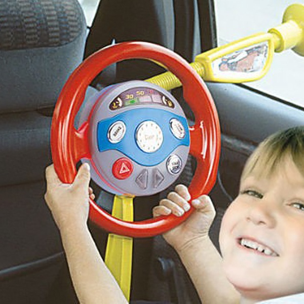 Keep kids entertained during a road trip with this steering wheel that features various driving sounds for added realism