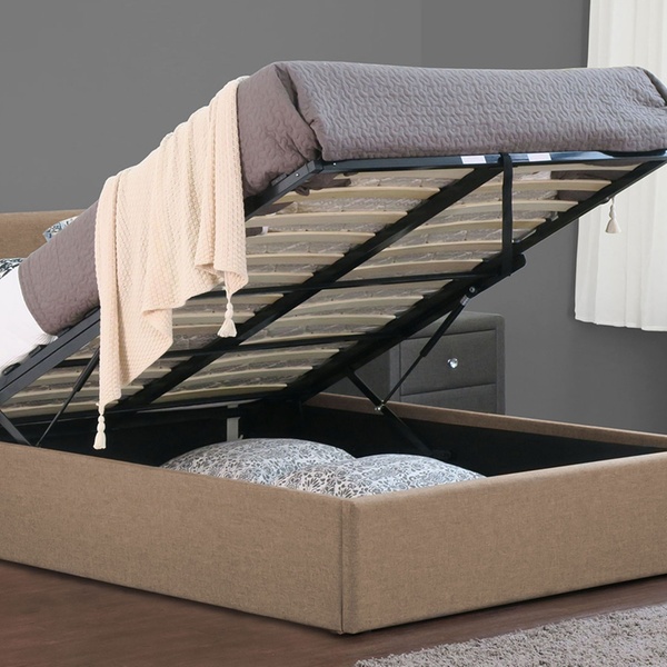 These stylish upholstered ottoman bedframes feature ample space for storage and can add a modern touch to most bedrooms