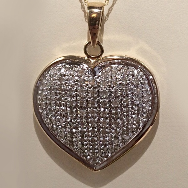 This jewellery set features an 18” 9ct yellow gold chain and a heart pendant with 1ct diamond cluster that can add romantic note to outfits