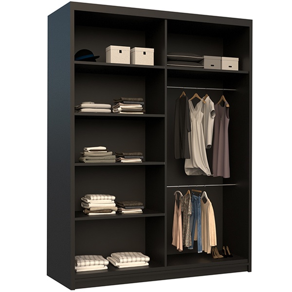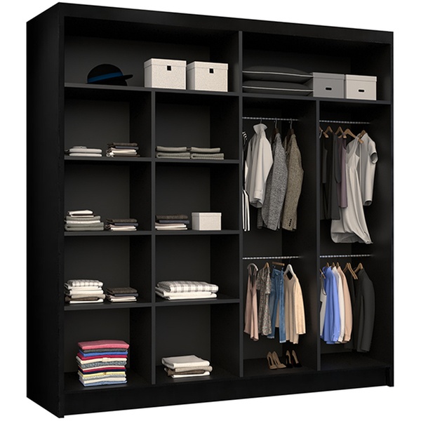 - 2 sliding doors, 10 shelves, 4 hanging rail