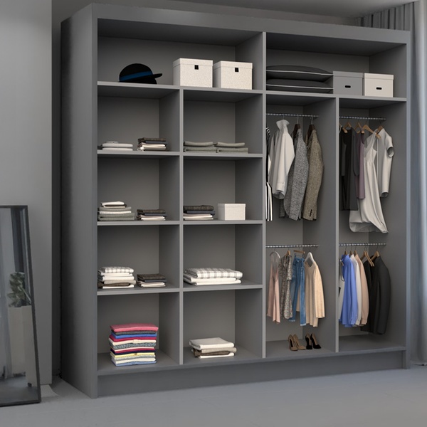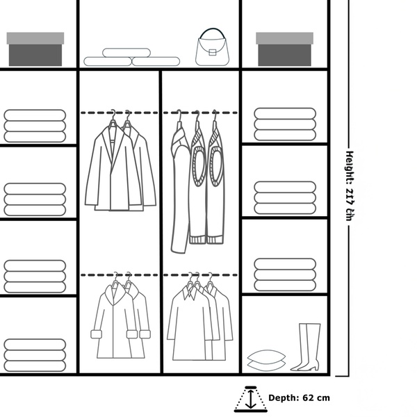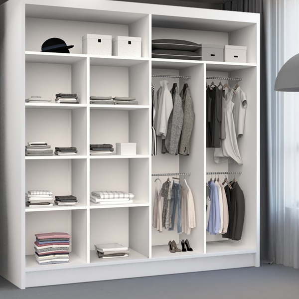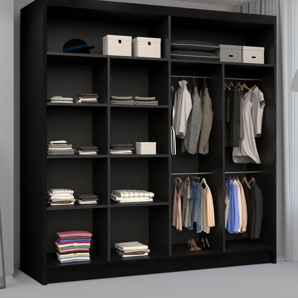 • 203cm: 2 x sliding doors, 10 x shelves and 4 x hanging rails