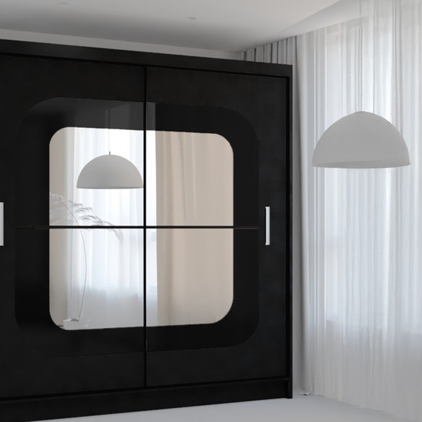 Featuring a sleek design, this wardrobe boasts sliding mirrored doors that enhance space while offering ample storage options