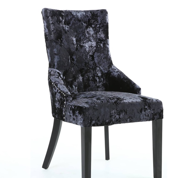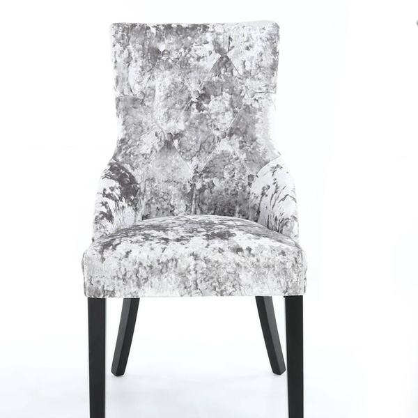 Featuring a wide comfortable seat, this comfy chair is upholstered in a crushed velvet fabric; available in two elegant colours