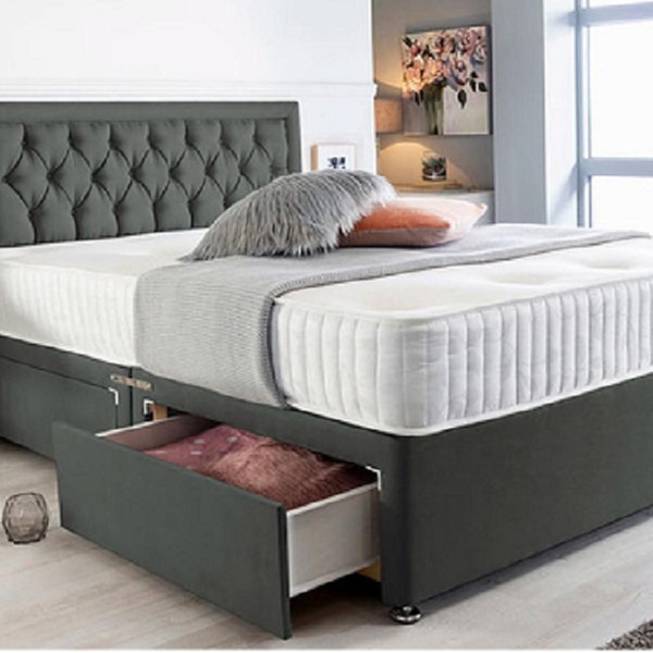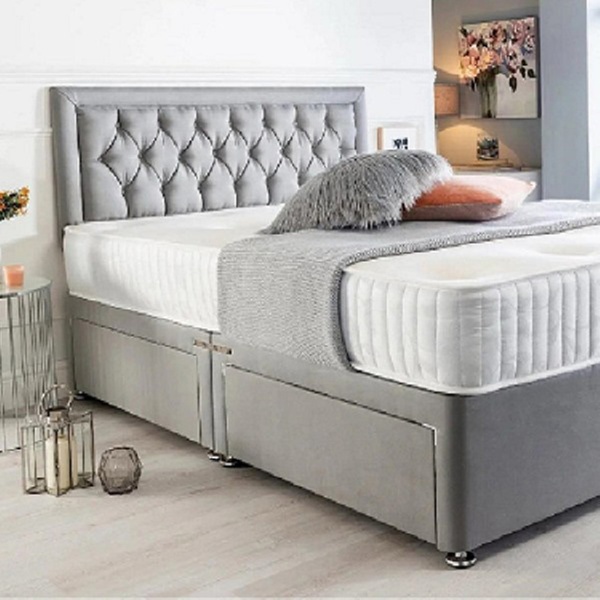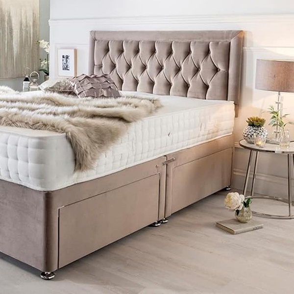 Elevate your bedroom with this elegant plush divan bed, showcasing a sophisticated 20" headboard with distinctive button detailing. Optional drawers offer practical storage space without sacrificing style