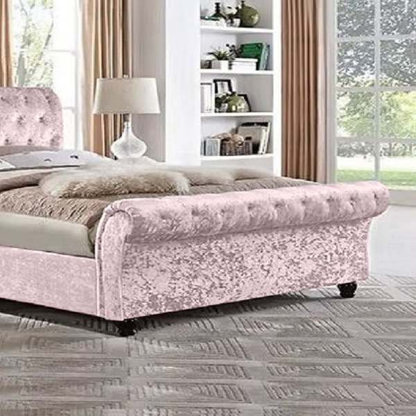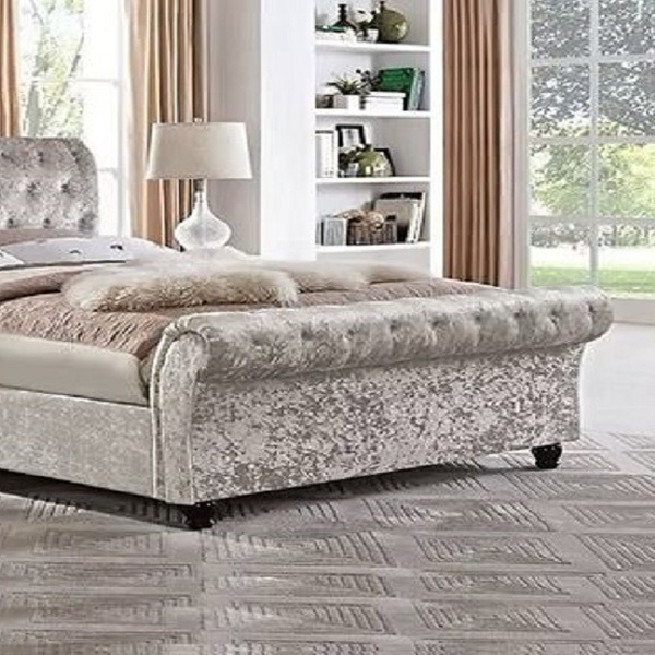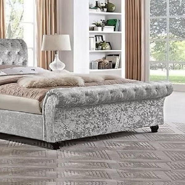 Featuring a plush design, this velvet sleigh frame adds a touch of elegance and warmth to any bedroom setup
