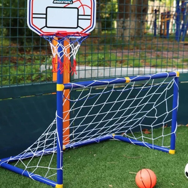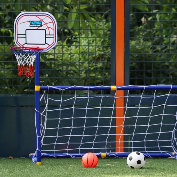 Designed for dual-sport fun, this goal transforms from a basketball hoop to a soccer net in seconds, ideal for active kids