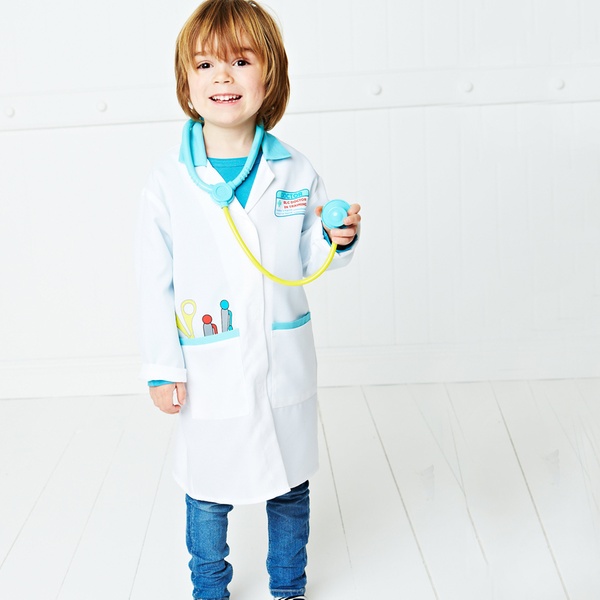 Including a white doctor’s lab coat, a mask and a stethoscope, this fun set is an ideal dress-up or playing accessory for little doctors
