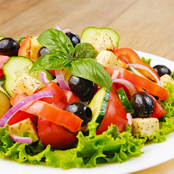 - Starters include hummus, tzatziki, tahini and Greek salad