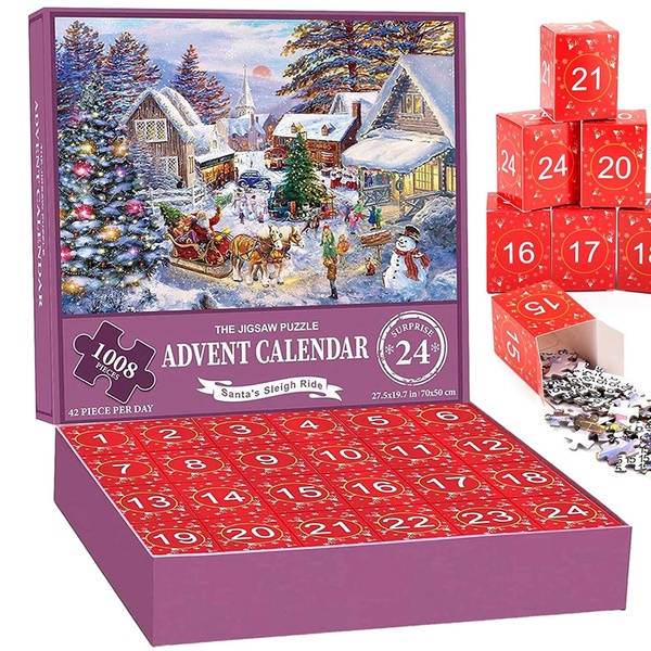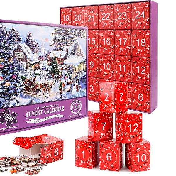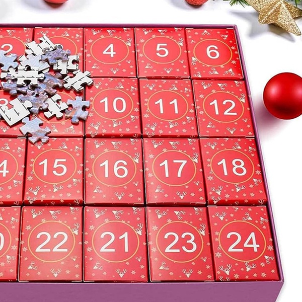 This jigsaw puzzle advent calendar features 24 unique boxes, making every day a delightful puzzle surprise leading up to Christmas