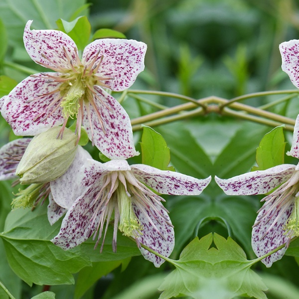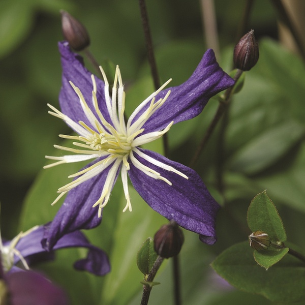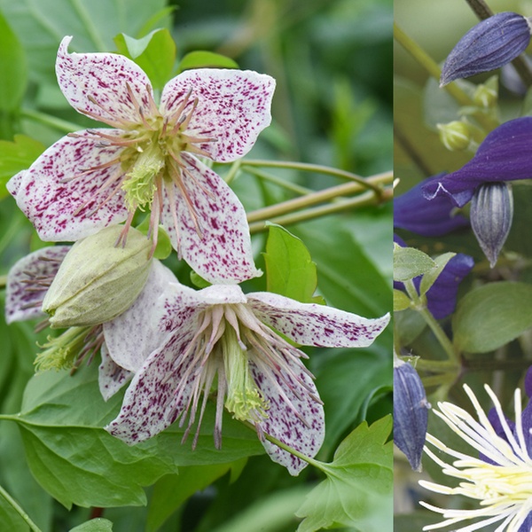 With its graceful scrambling vines and strongly scented deep violet blooms, Clematis x aromatica is the an ideal addition to your garden; while Clematis 'Advent Bells' offers dainty creamy-white blooms with red-speckled markings, adding a touch of elegance to your outdoor space