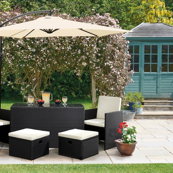 - Three colours to choose from: black or brown rattan with contrasting cream cushions, or a grey set with pale grey cushions