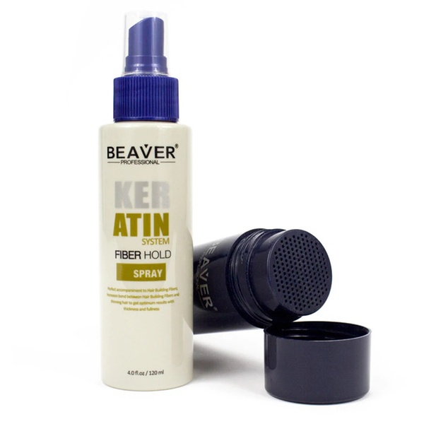 - Spray Beaver Fibre Hold Spray 10–12 inches from hair to secure fibres
