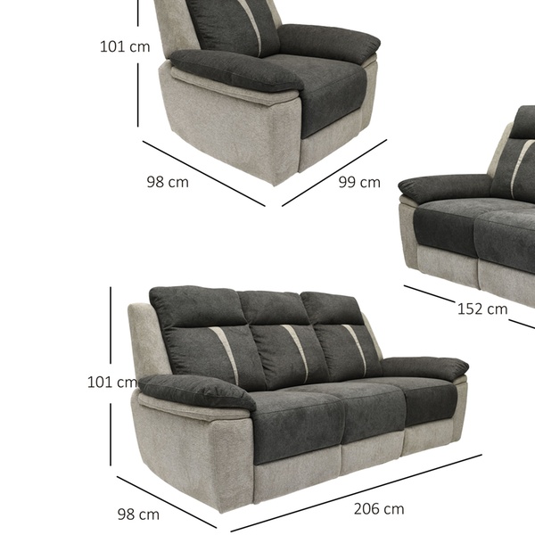 - 3 seat sofa: 206cm x 98cm x 101cm