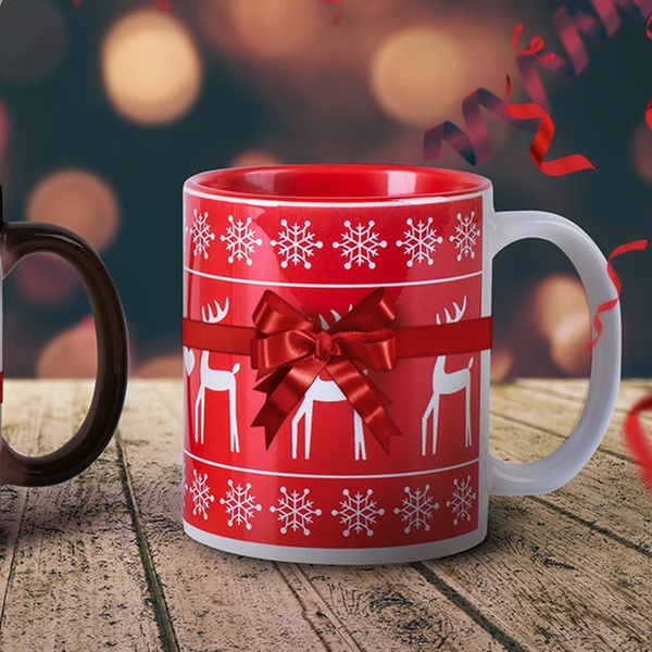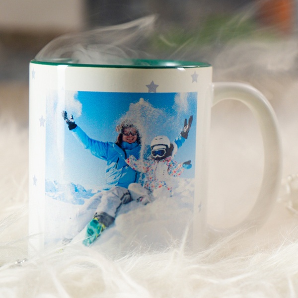 Present family or friends with up to three personalised coloured or magic mugs that may include own photos and texts