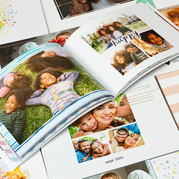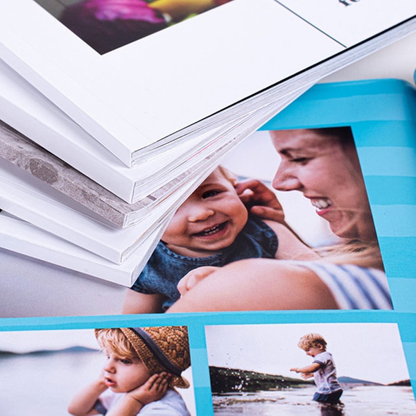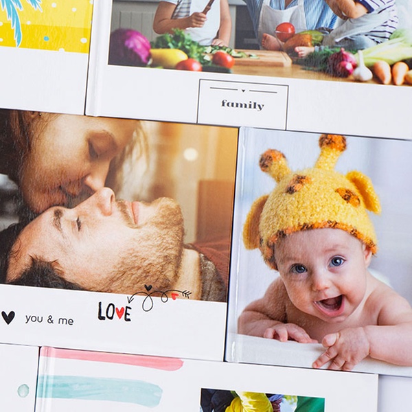 Keep precious moments alive in up to three photobooks; features colourful cut-out frames, high-quality paper, and up to 100 pages