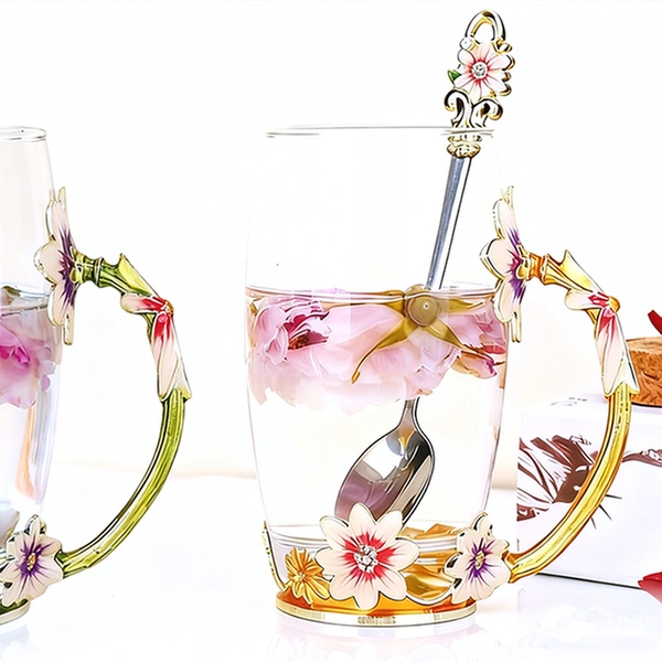 Featuring a stunning flower design, this glass teacup brings elegance to every sip while enhancing your tea experience
