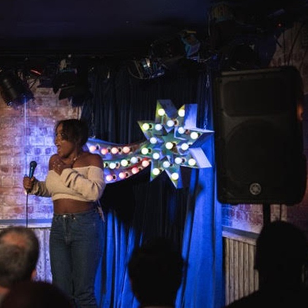 Dive into London's comedy scene with top acts and an electric vibe at a cozy venue near King's Cross Station