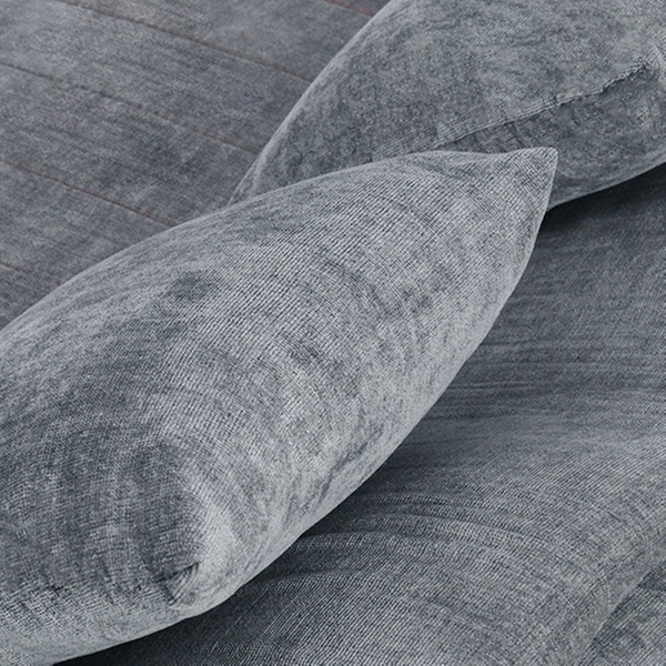 - Covered in grey linen that’s soft to the touch, wrinkle-resistant and breathable for all-season comfort.