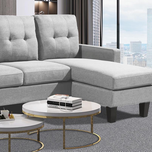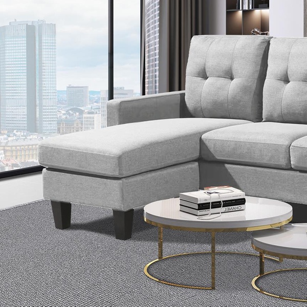 - Features a 3-seat sofa and reversible chaise lounge for versatile placement.