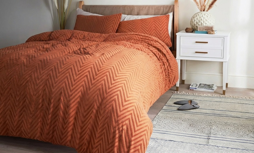 Today's Groupon offers Cosmo Living Tufted Embossed Terracotta Duvet Set, distributed by Mhp Trading Ltd.