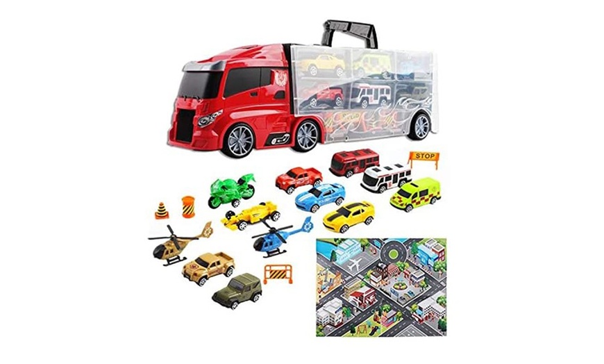 Today's Groupon offers CR1 Transporter Truck Carrycase Play Set with Toy Vehicles and Map, distributed by Deao Ltd.