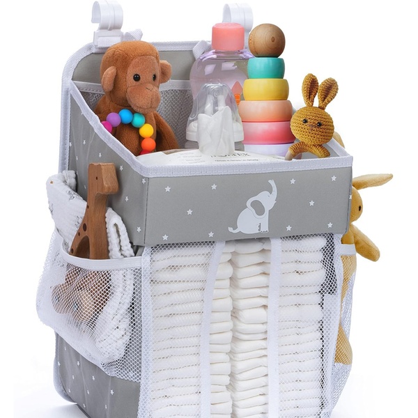 Keep all your baby essentials organized and within reach with this versatile hanging nursery organizer. Perfect for baby changing stations, nurseries, or travel, this nappy storage caddy features multiple compartments and reinforced shelves to hold diapers, wipes, lotions, and more.