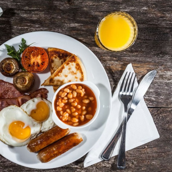 Mini English A smaller start to the day — one sausage, one egg, bacon, beans, and toast. Simple, speedy, and satisfying.