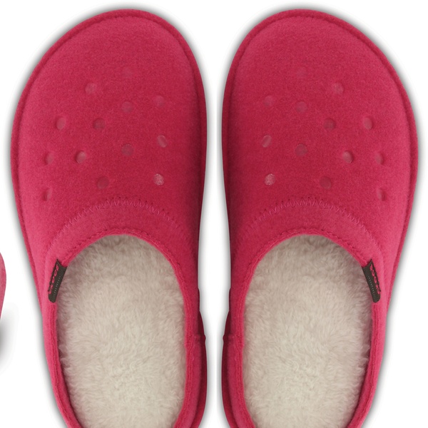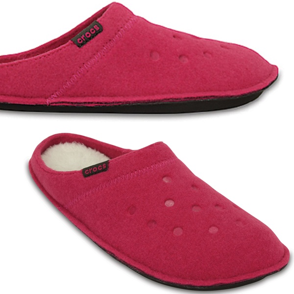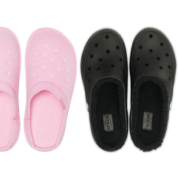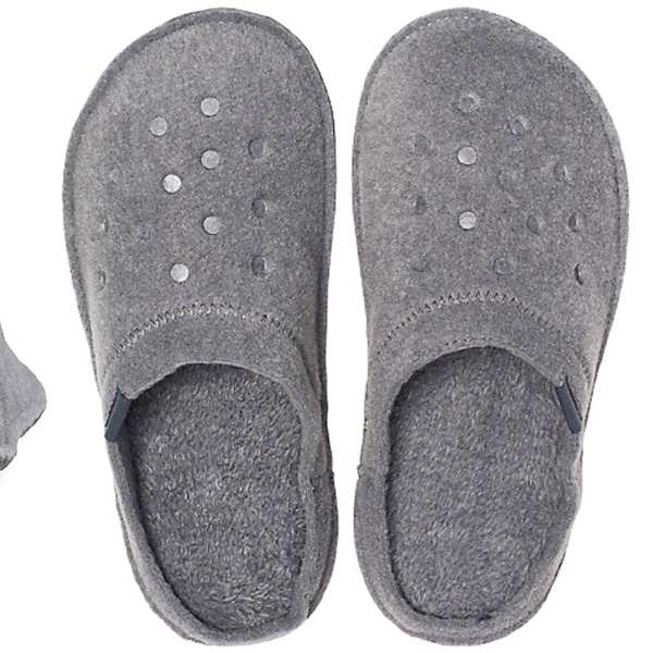 Featuring the classic hole pattern along with soft and fuzzy design, these slippers are ideal for padding around the house