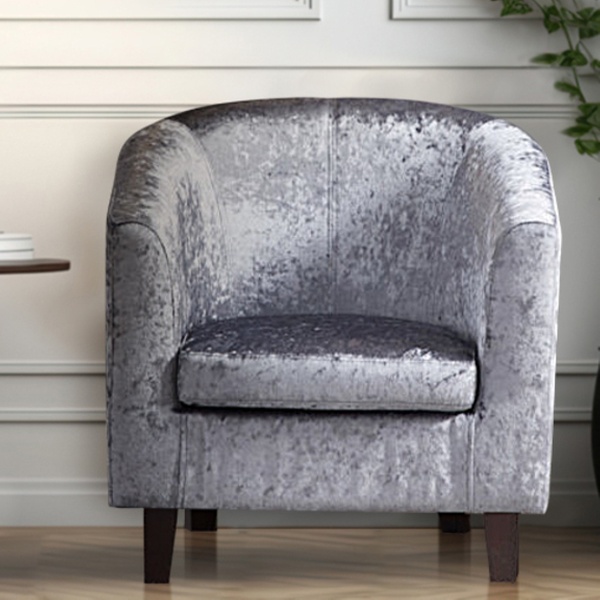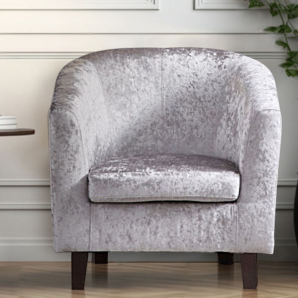 Upholstered in crushed velvet, this easy-to-assemble tub chair can be a matching addition to most interiors