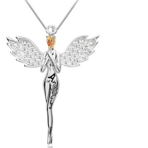 - Features a stunning silver pendant shaped like a guardian angel