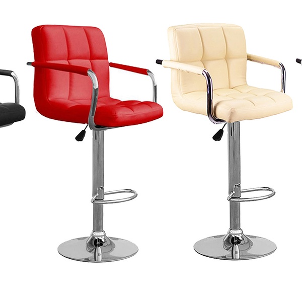These Cuban-style bar stools feature integrated armrests and footrests; four colours available