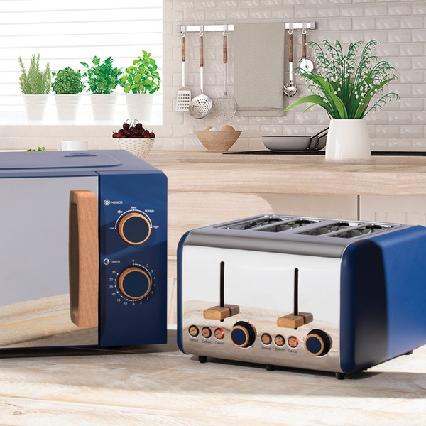 Featuring a Scandinavian-inspired design, this set includes a 20L microwave, four-slice toaster and 1.7L kettle