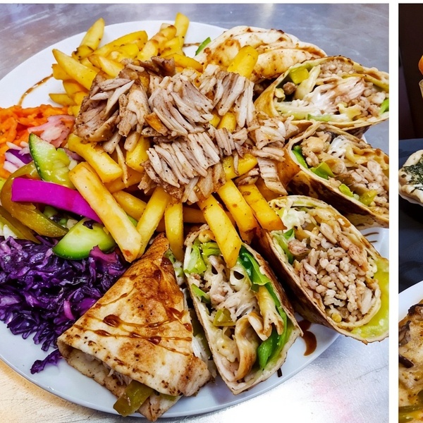 * Falafel Wrap – A soft flatbread wrap filled with crispy falafel, herbs, and creamy tahina.