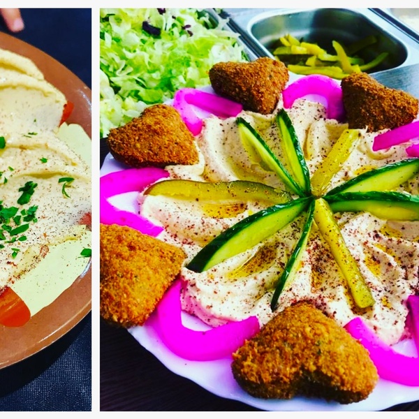 * Falafel – Golden chickpea patties seasoned with herbs, served with hummus and pickles.