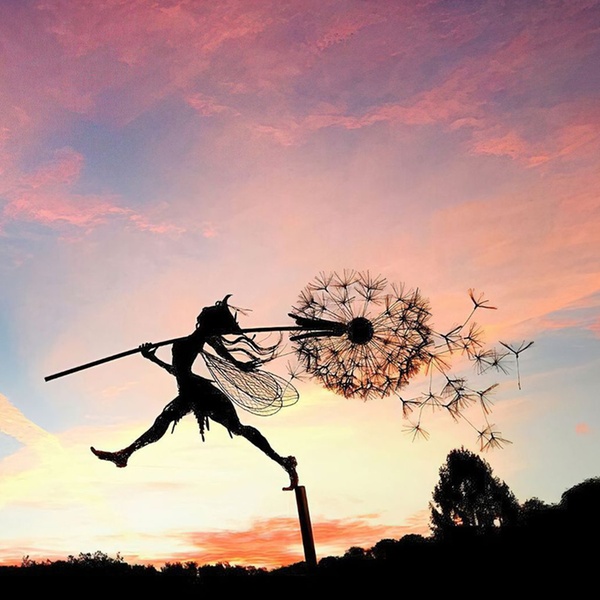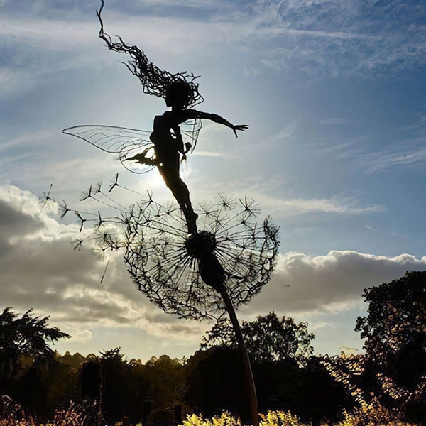 Crafted from durable metal, this enchanting garden decor adds a whimsical touch to flower pots and outdoor spaces alike