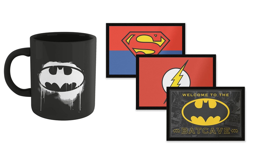 Today's Groupon offers DC Comics Themed Entrance Mats and Coffee Cups, distributed by Zavvi Group Ltd.