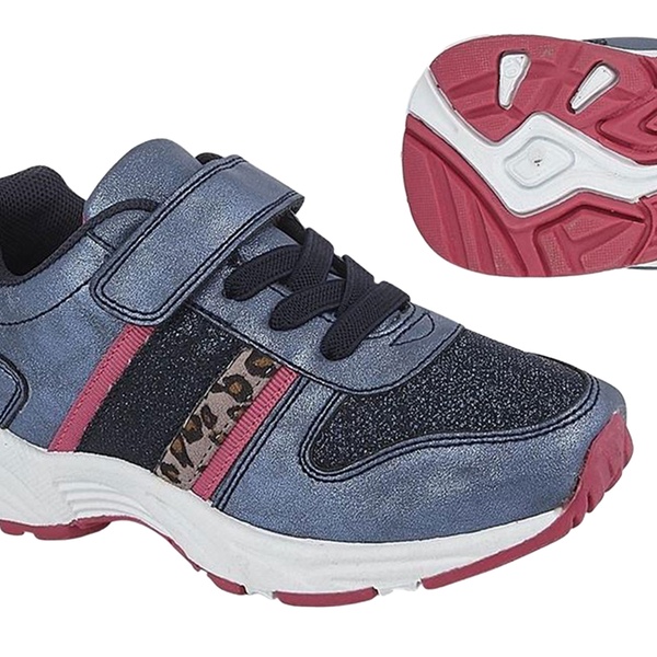 Chic metallic blue shines bright, adding a stylish touch to every step for the young trendsetter
