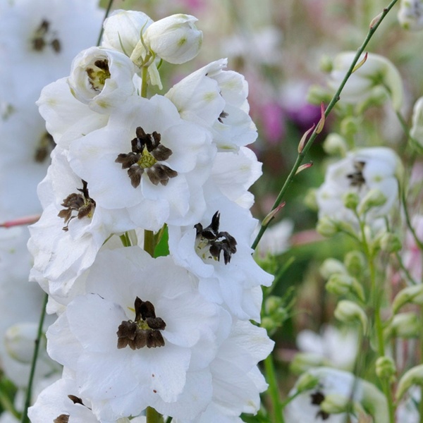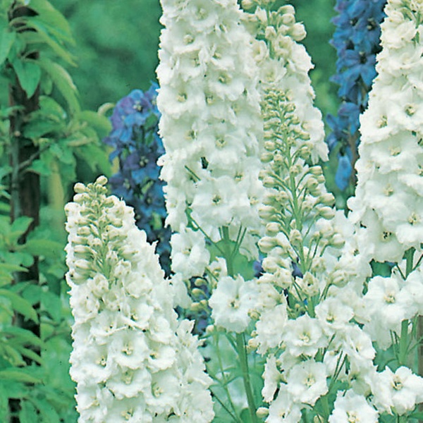 This double-flowered young delphinium plants can add a colourful look to borders or patios and can also be productive the following year