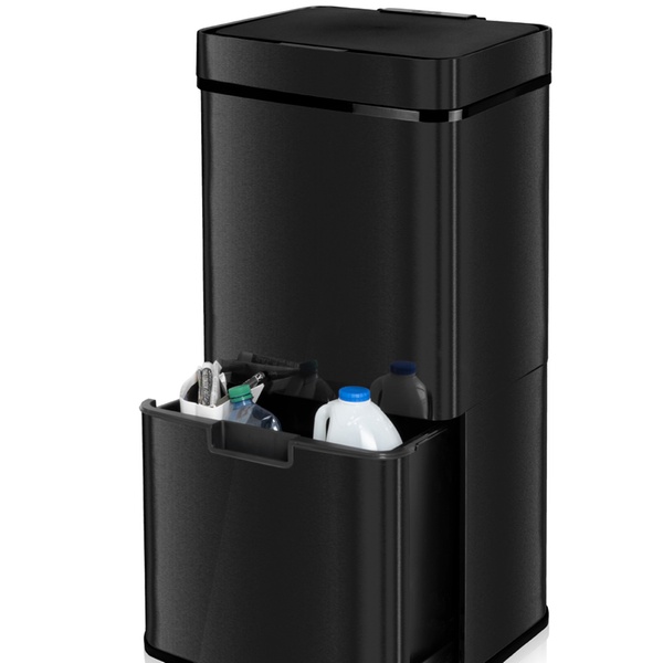 Featuring a timer display detailing how long until the lid automatically closes, this dual bin is ideal to sort recyclable waste