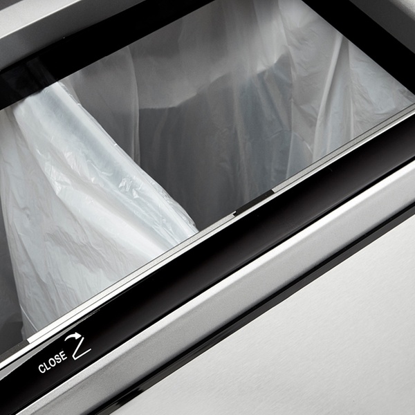 - Accepts two bin liners beside each other, but can also be used with just a single bag for general use