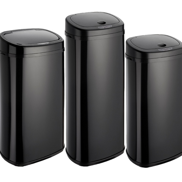 Featuring an infrared sensor, this steel bin opens the lid when detecting front motion and can also be operated manually