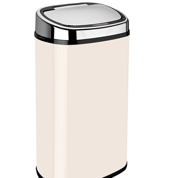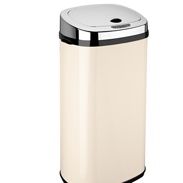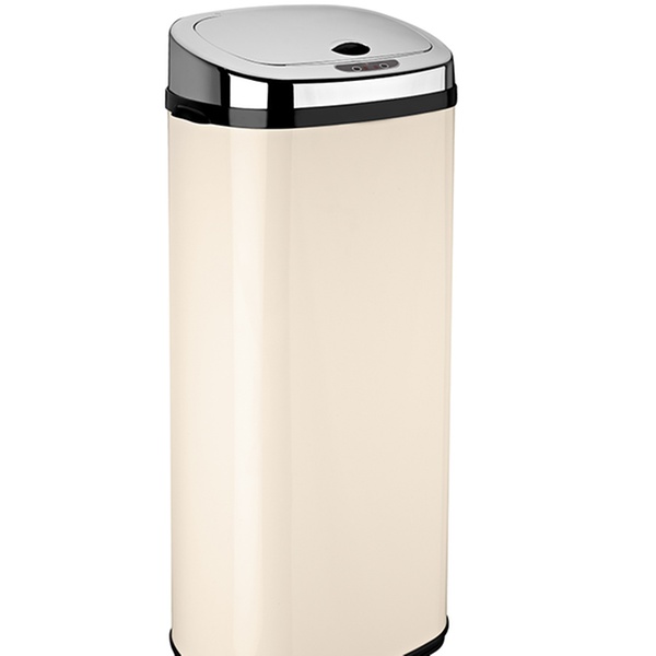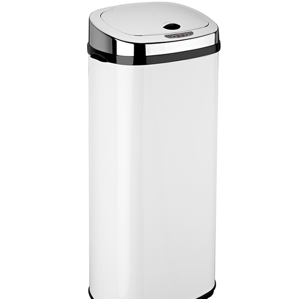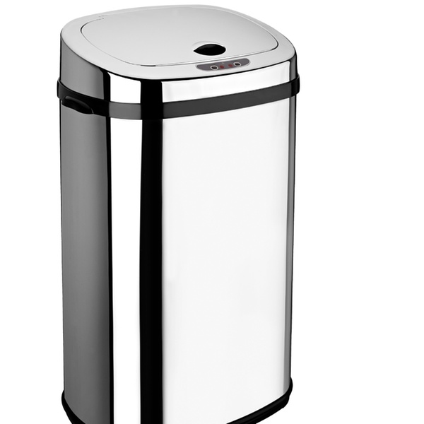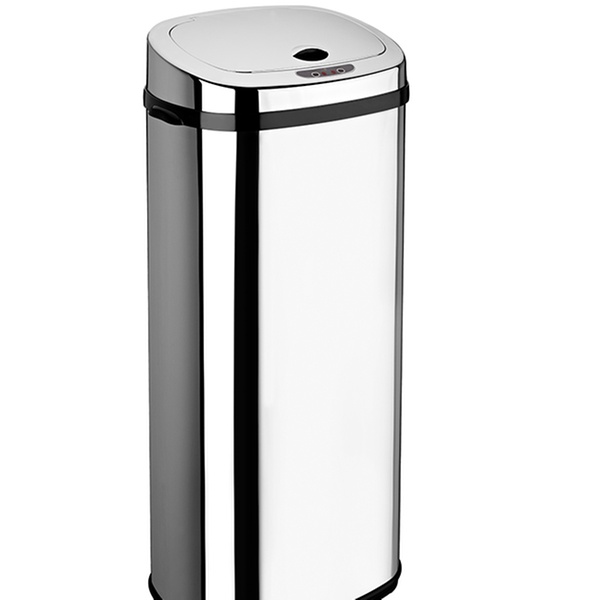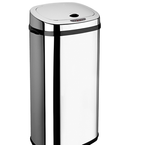 Featuring an infrared sensor, this steel bin opens its lid when detecting front motion and can also be operated manually